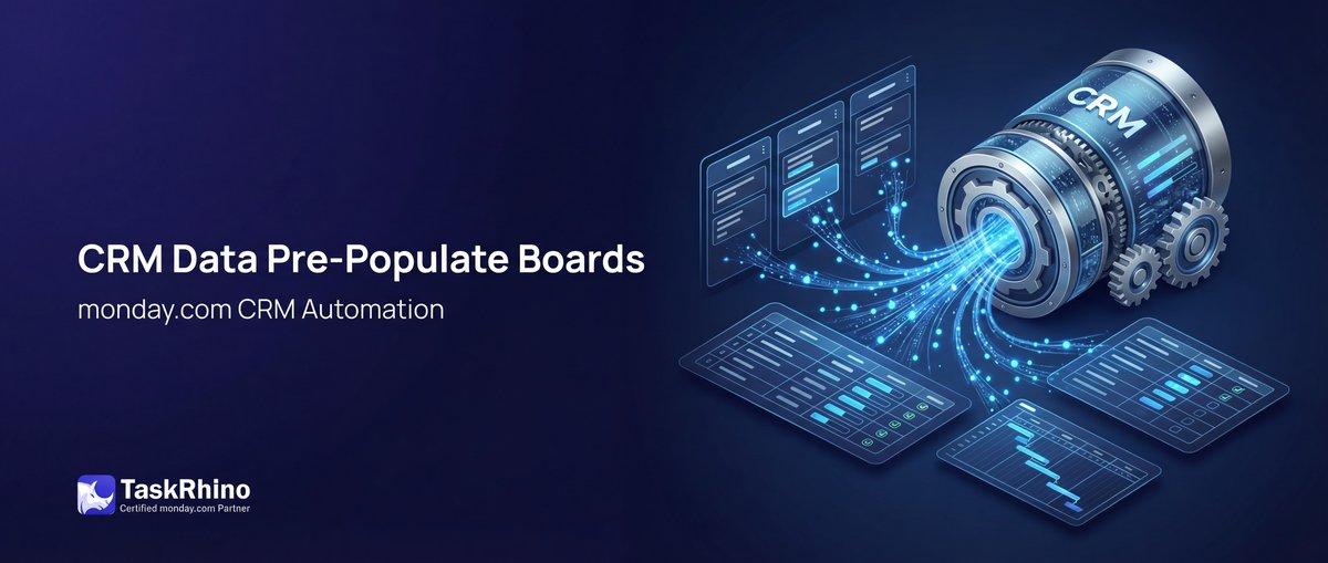 This is the CRM-to-project data gap that creates busywork, introduces typos, and slows down every project kickoff. The information exists — it’s sitting right there in your CRM board — but monday.com has no native automation to transfer it when you create new project boards.